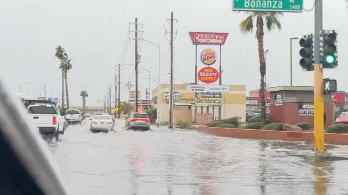 Upon arriving in the city on Tuesday evening, our team observed cars navigating through deep puddles near Harry Reid International Airport. Such scenes are not uncommon when sudden rain showers hit this desert city.